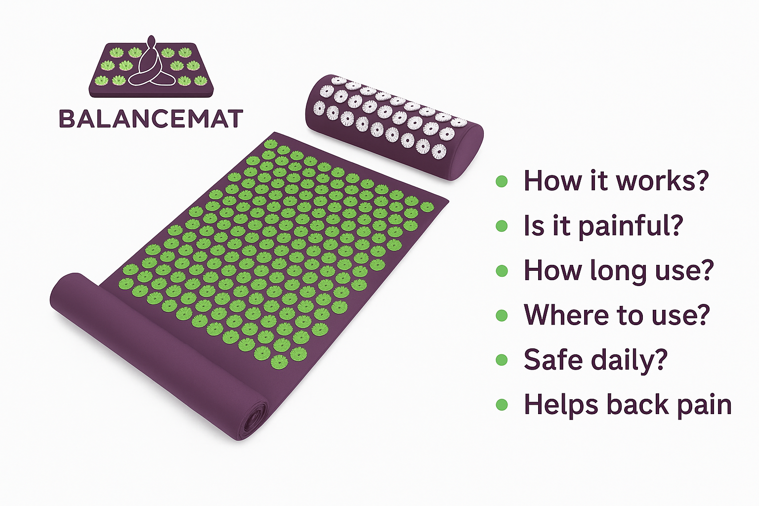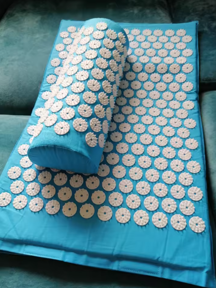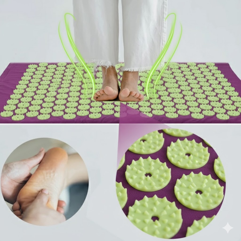 The mat uses pressure points to stimulate circulation, relax muscles, and reduce tension across the body.
